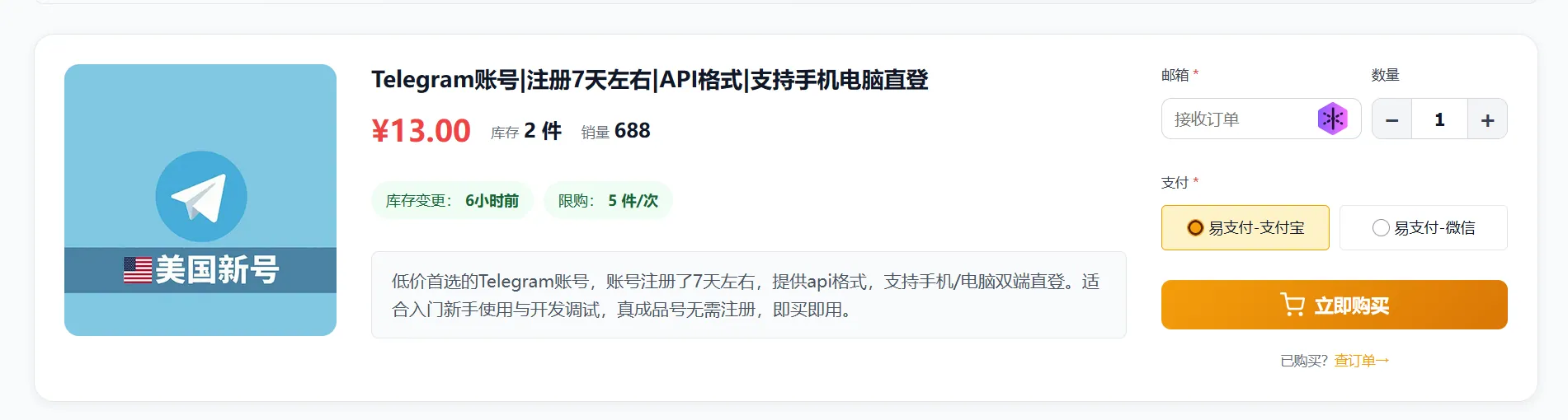 - 在首页或者“Telegram账号”分类下,看到不同套餐:比如“3个月老号”“6个月老号”“12个月以上老号”等。