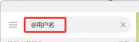 - 在搜索框直接输入对方的用户名,注意需要包含@符号,例如@laowang123